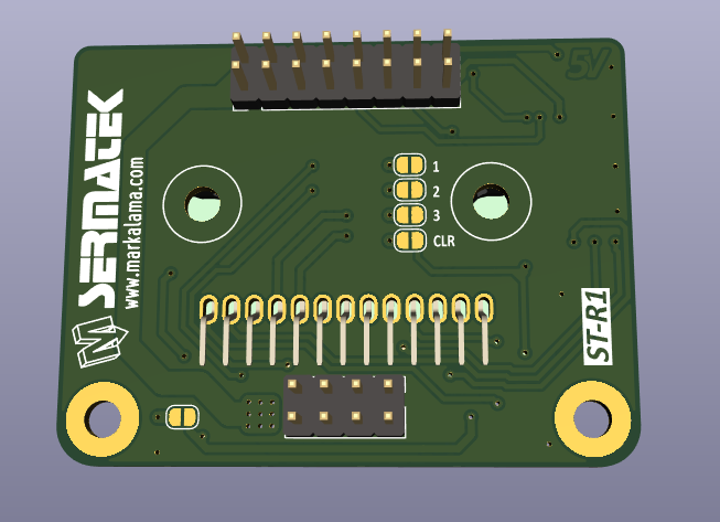 ST-R1 modülü, sistem kontrol kartlarına doğrudan takılabilecek şekilde 2.54 mm adımlı standart pin header